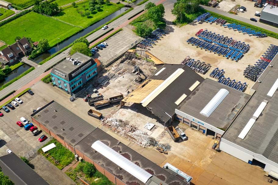 We have demolished a historic business building on the grounds of CIENL and Burg Trailer Service. This building from 1937 served as a trailer workshop for more than 80 years and was a familiar sight on Katwijkerlaan for many people in the area. The building has made way for the expansion of a trailer storage facility.