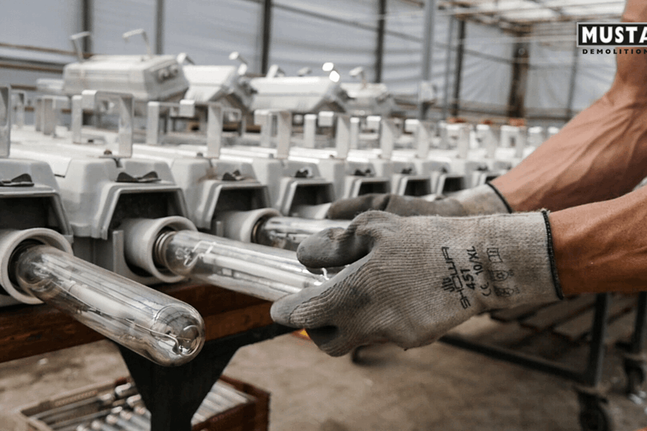 Das technische Team von Mustang Demolition hat Erfahrung mit der Demontage jeder Art von Beleuchtungsanlage.