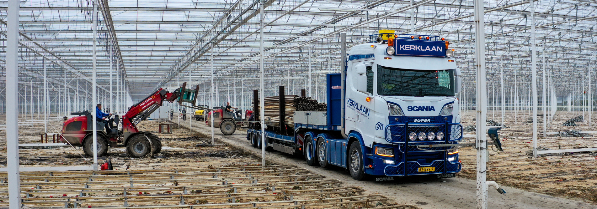 À Luttelgeest, Mustang Demolition a réalisé une rénovation complète du Hoogweg Paprikakwekerijen en seulement une semaine et demie. La serre, utilisée intensivement depuis 2008, avait besoin d'une rénovation majeure. Des années de transport avaient rendu le système de rails tubulaires plat et les gouttières de culture n'étaient plus adaptées à une utilisation optimale. Au cours du projet, l'équipe de Mustang Demolition a enroulé et enlevé un total de 151 kilomètres de gouttières de culture, ainsi que 302 kilomètres de tuyaux de chauffage. De plus, 125 000 supports de rails tubulaires et de longues poutres ont été retirés, ce qui donne un sol de serre complètement vide, désormais prêt à niveler le sol.