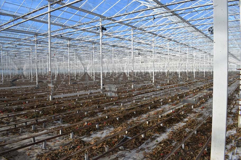 Mustang Demolition a participé à la reconversion de cette serre de 110 000 m². Par exemple, nous avons enlevé les tuyaux d'égouttement et les gouttières de culture, suspendu les tuyaux de chauffage et enlevé tout le sol. La serre est prête à être nivelée.