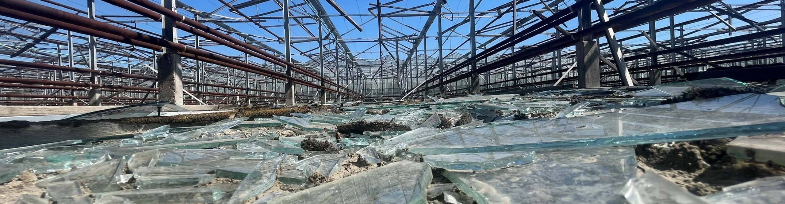 À Pijnacker, en Hollande-Méridionale, Mustang Demolition démolit l'une des plus anciennes serres de Pijnacker. La tempête Eunice de février 2022 a gravement endommagé la serre. L'ancien sol de culture est devenu complètement recouvert d'éclats de verre. Pour enlever le toit en bois, cette vitre est d'abord complètement dégagée. Après cela, la terrasse en bois a également été retirée. La construction en acier suivra également à un stade ultérieur.